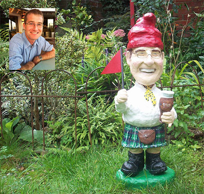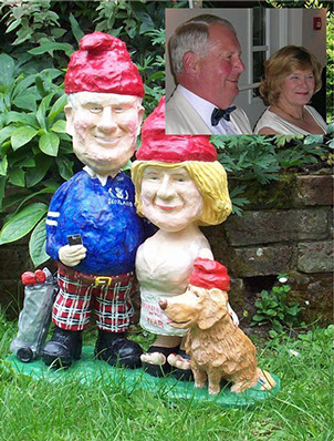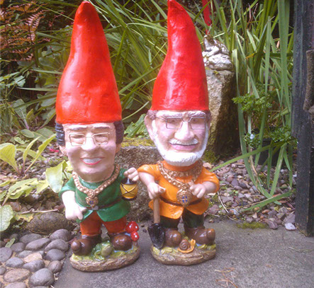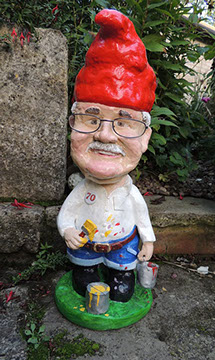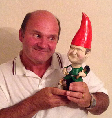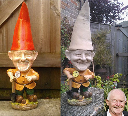 Kim Leachman was once resident cartoonist and illustrator with the Bournemouth Echo and Powerboat and Waterskiing Magazine in London, but now working at The Gnome Office, he moved on from 2D illustration, to sculpting his own unique 3D Caricature Gargoyles and Garden Gnomes for TV/Media and Private Commissions.