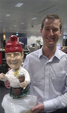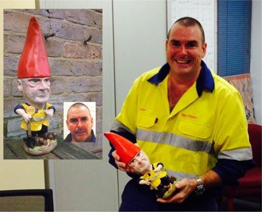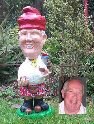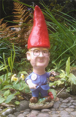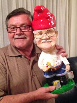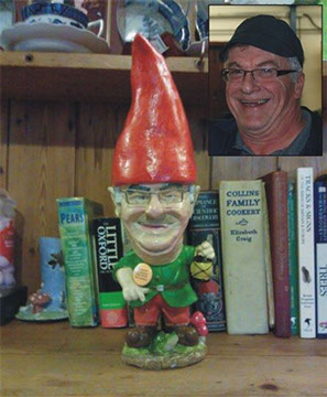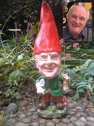 Gary Good Gnome, alias Gary Goodlad, a 70 year old retired Miner with his Miners Lamp and engraved metal inscription (both optional extras).